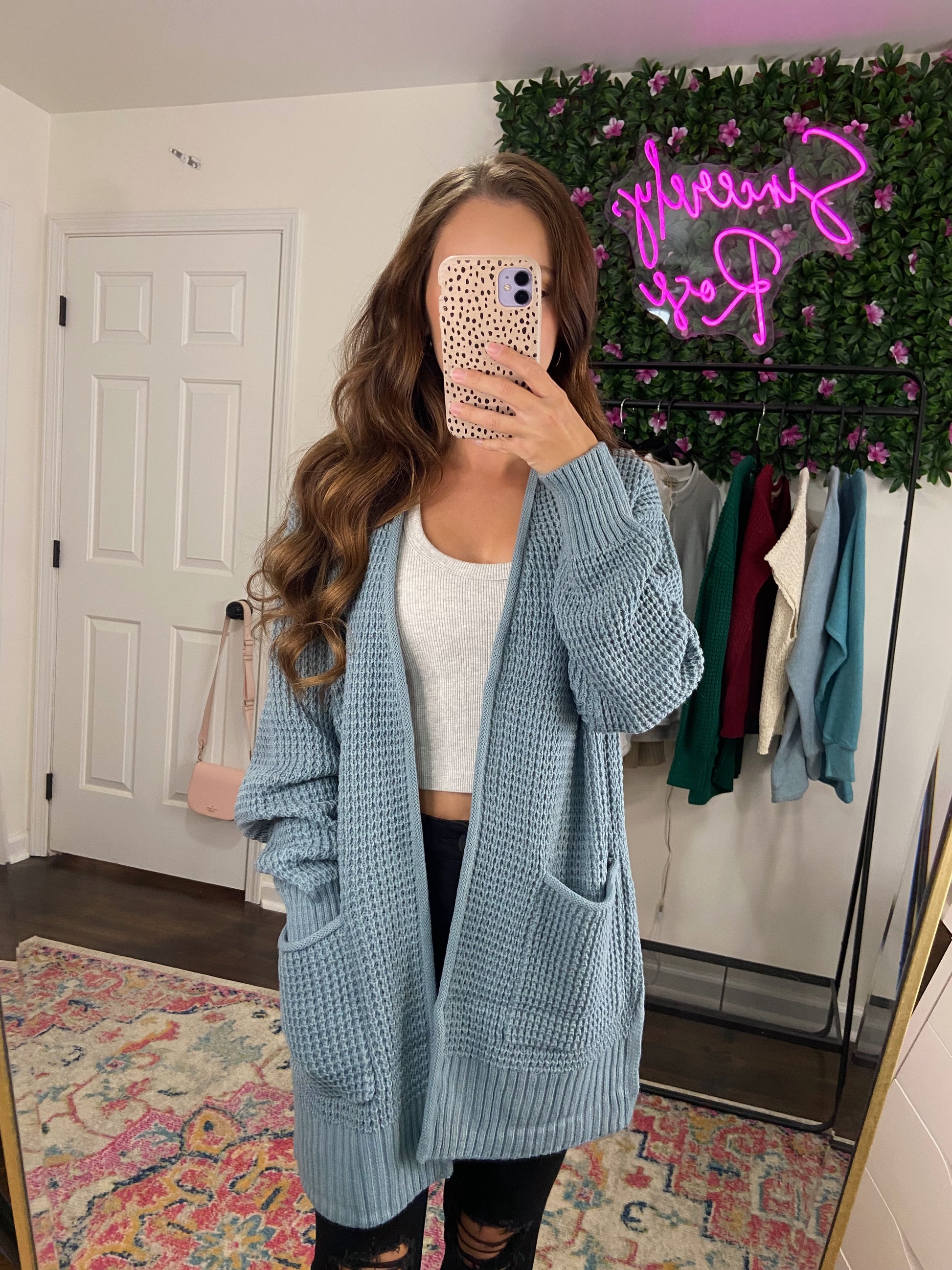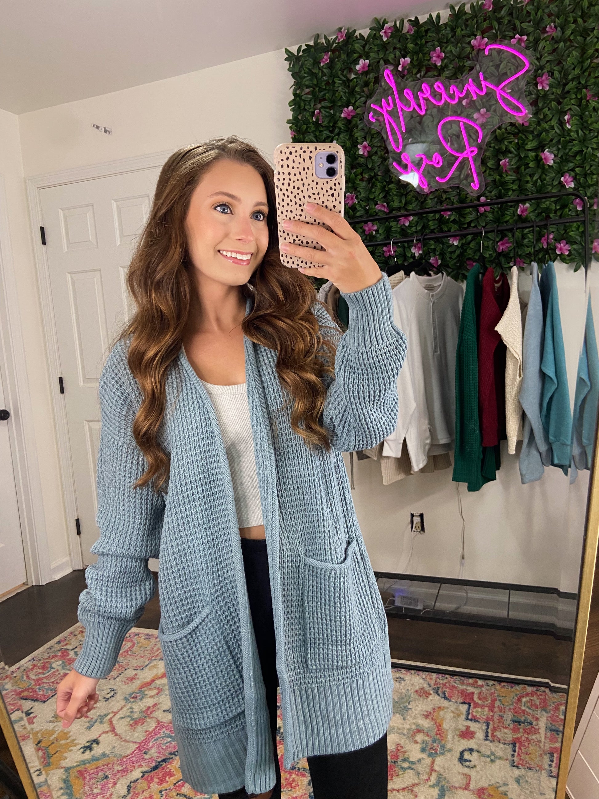 - Meet the Londyn Cardigan! The perfect waffle-knit, long length cardigan. Features pockets and a relaxed fit. Easy to throw on and enhances any outfit!
